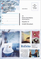 Hier ein kleiner Faltprospekt für eine befreundete Künstlerin als Wurfsendung an Haushalte und zum Auflegen in örtlichen Geschäften und Hotels. Das hat genügt, um sie in kurzer Zeit bekannt zu machen. Keine weiteren Werbemaßnahmen waren notwendig.